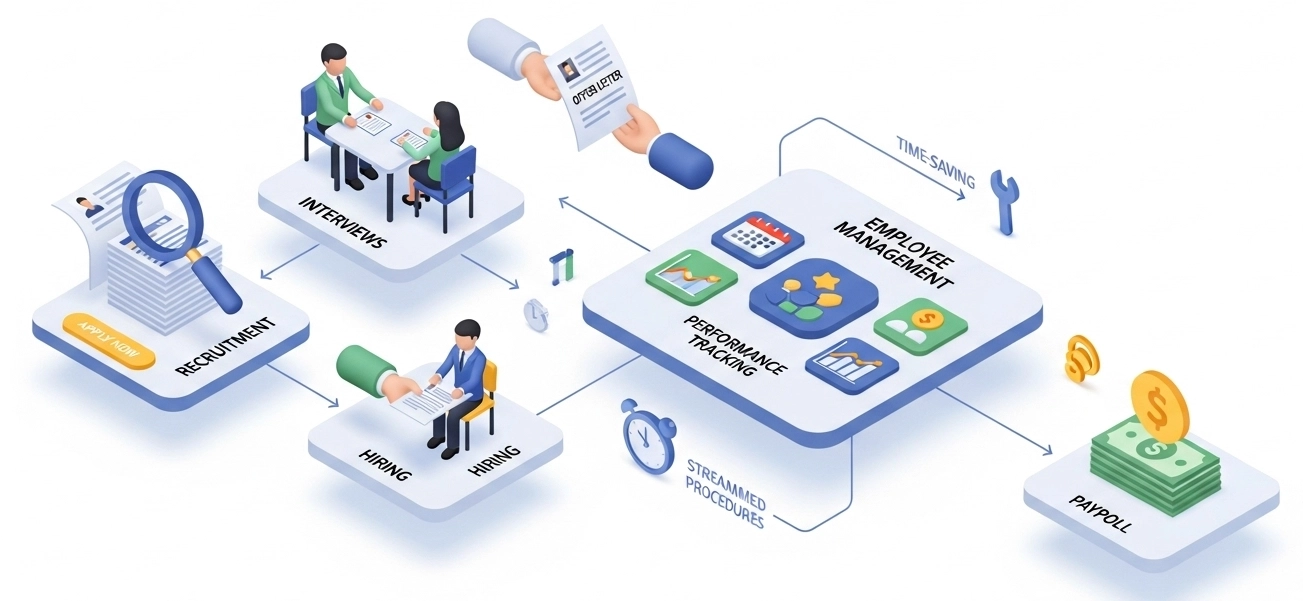 نظام موارد بشرية شامل ، من التوظيف وحتى الرواتب