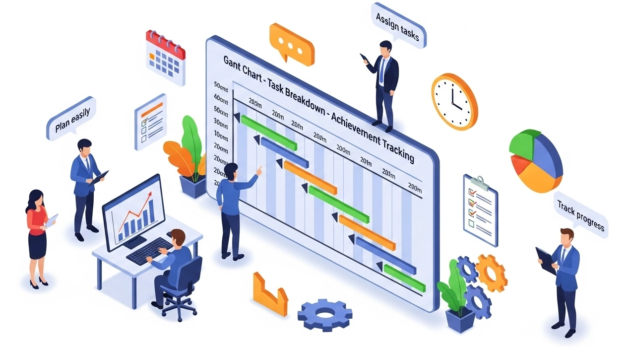 خطط لمشاريعك بسهولة مع مخطط جانت التفاعلي، وزّع المهام على الفريق، وتابع نسبة الإنجاز لحظة بلحظة.